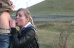 Met een pijn vertrokken gezicht, laat de geile blondine haar krappe anus neuken door de grote negerlul. Vervolgens trekt ze de dikke penis af terwijl ze de grote eikel