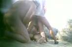Een paar stelletjes liggen op het naaktstrand lekker te neuken. Na verloop van tijd komen er steeds meer mannen kijken die zich massaal beginnen af te trekken.