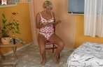 Ze is blond heeft dikke tieten en een kaal geschoren kut, die ze mastubeerd tot ze een orgasme krijgt.