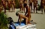 Het hedonistisch swingers paradijs van Europa is natuurlijk Cap D'Agde. Daar op het strand neukt dit franse koppel zich helemaal suf voor een grote groep toeschouwers.
