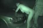 Amateur gangbang vanuit de achterbak van de auto. Een dikke slet staat voorovergebogen op de achterklep zodat de ene lul naar de andere lul haar kut kan neuken.