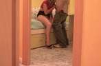 De huisvrouw verleid de klusjes man de haar niet kan weerstaan als zij zich vingert, dan pakt ze de stijve lul vast en pijpt hem. Waarna hij haar natte kut neukt en hi