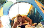 Geile meid heeft zin om lekker hard in de tent te neuken.