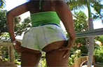 Donkere tiener laat ons mee genieten van haar heelijke grote billen.