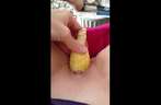 Deze geile meid heeft enorm veel zin in sex. Aangezien er geen man in de buurt is met een harde pik om haar te bevredigen doet ze aan zelfbevrediging. Ze heeft een moo