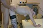 Sexy netkousen tot aan haar heupen en een lekker kontje. Zijn harde pik stoot lekker diep in haar kutje. Op zijn hondjes komt die lul net even wat dieper. Een lekker a