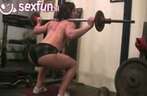 Bodybuilders trainen nooit naakt maar deze femme fatal maakt er haar sport van. De vraag is: 'hoe geil wordt jij van vrouwen die meer kunnen drukken dan jij"?