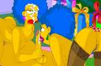 Terwijl Homer Marge van achter neukt steekt Marge een dildo in de natte kut van haar vriendin en beft haar tegelijk, dan stopt Homer zijn dikke lul in de anus van Marg