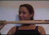 Het Kinky meisje lacht zo lief als ze de honkbalknuppel laat zien. En die grote knuppel gaat natuurlijk in haar kutje.