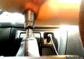 Helemaal naakt neukt ze met haar kut en met haar anus de versnellingspook van de auto.