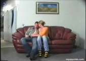 Ze trekt hem geil af en neemt zijn pik vaak in haar mondje, na al het trek en pijp werk spuit hij al zijn zaad in haar tiener mondje.